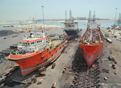 ASRY’s twin slipways, each with a dry berth length of 255 metres are ideal for accommodating offshore service boats, large tugs and supply vessels.